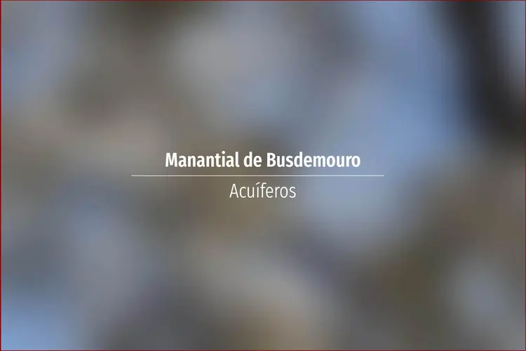 Manantial de Busdemouro. Acuífero en Asturias: Cuenca: Norte Unidad Hidrogeológica: Unidades aisladas Sistema acuifero: Unidades precarboníferas Toponimia: Manantial de Busdemouro Cota: 807 Naturaleza: Manantial Uso: Abastecimiento a n ...